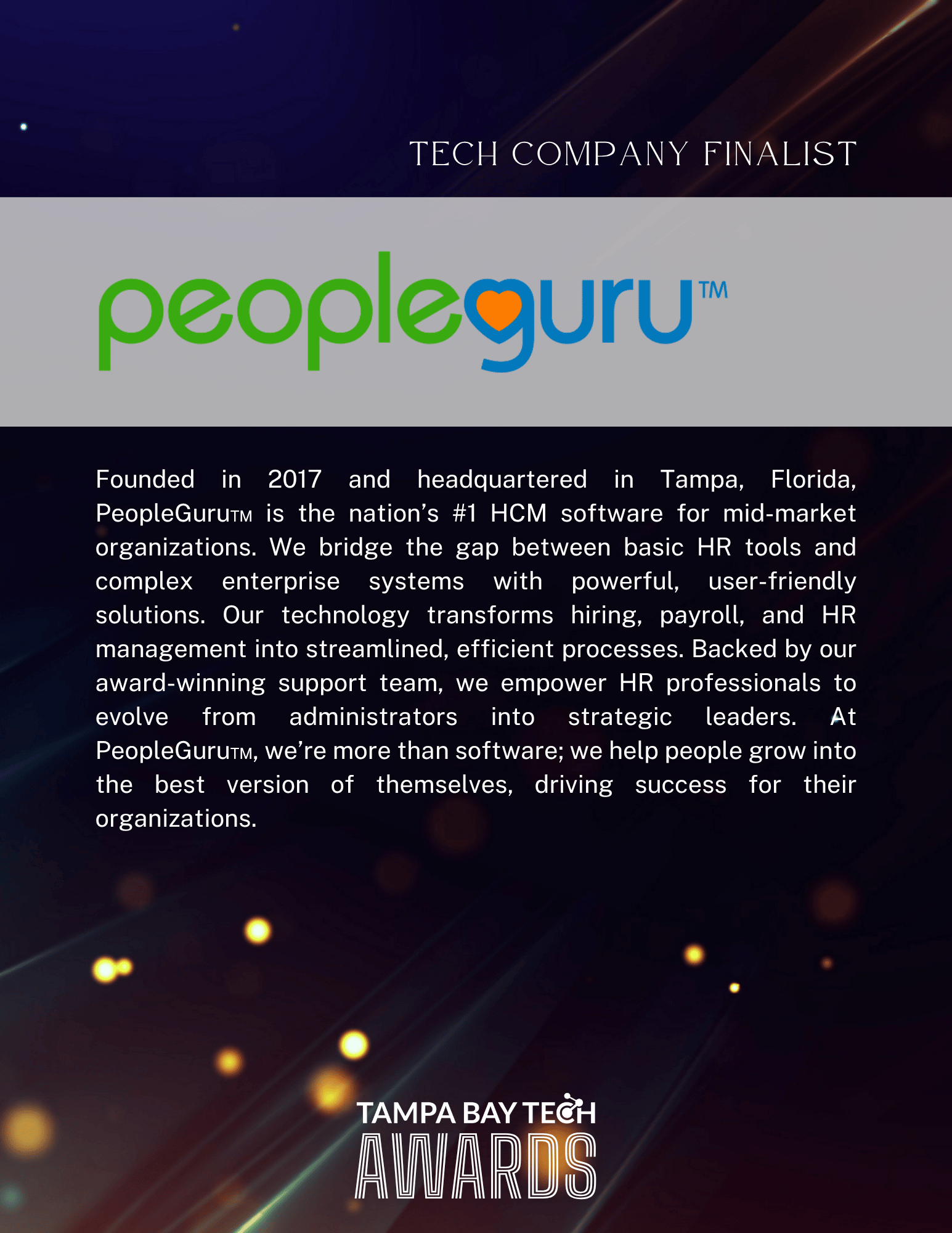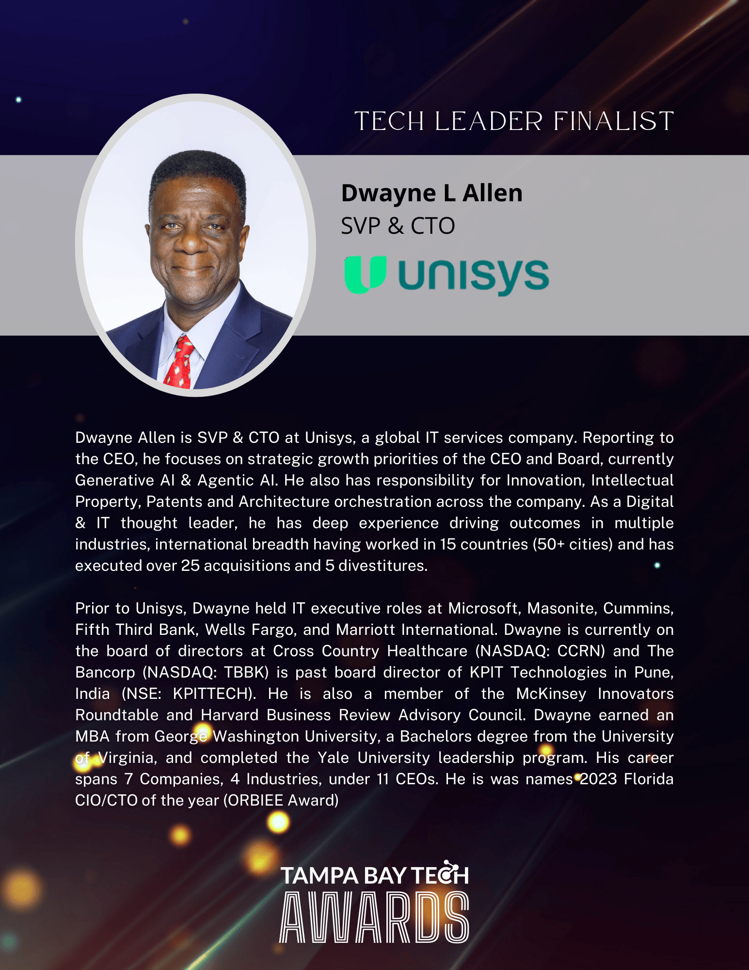 The Tech Company of the Year Award recognizes a Tampa Bay headquartered company with over 5 years in business, dedicated to advancing the region’s technology community. The honored company exemplifies transformational excellence in its people, programs, and projects, making significant contributions to its industry and setting a standard for innovation and community engagement.